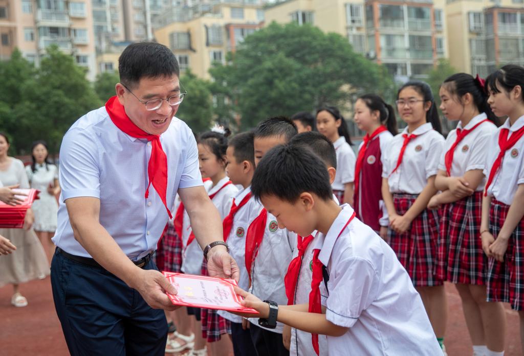 在附属小学,校领导与附属小学校长柳琴进行了亲切交谈,在详细了解附属小学办学情况与校园建设情况后,对学校工作给予了肯定并提出殷切期望。随后,他们来到孩子们中间,佩戴上少先队员献上的鲜艳红领巾,与孩子们亲切交流,并给“校园之星”和“学习积极分子”颁发荣誉证书、赠送节日礼物,合影留念。