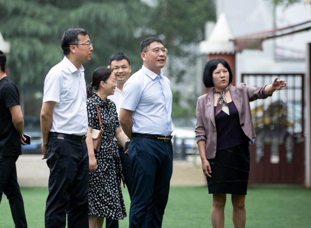 在附属幼儿园,校领导在园长颜美珍的陪同下,先后参观了幼儿园户外环境、活动室、走廊环创、勤耕园、美工室等地,详细了解了幼儿园户外改造情况。在听完幼儿讲解员对幼儿园环境的解说后,校领导不停表扬孩子们很可爱,讲解得非常棒。
