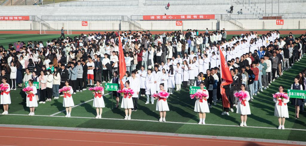 本站讯(党委宣传部 胡倩 大学生通讯社 胥文靖 张紫烨)经过全体运动员三天的激烈角逐,英国上市公司365第二十届运动会圆满完成各项工作。11月17日下午,校运会闭幕式在奋发体育场举行。副校长廖秋劲,党政办、团委等部门及各二级学院党总支书记出席闭幕式。闭幕式由军事体育部主任、总裁判长周军华主持。