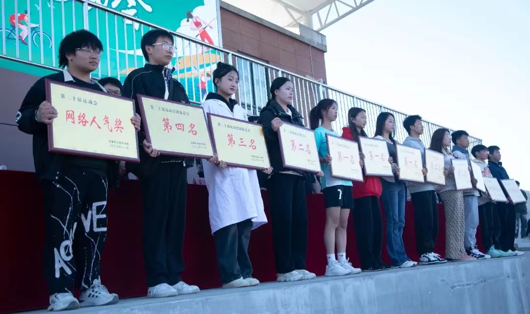闭幕式伊始,军事体育部副主任、副总裁判长谢坚老师宣布本届运动会体育风尚奖名单、入场式表演获奖名单、团体总分获奖名单、网络人气奖。伴着激昂的音乐和激烈的掌声,获奖学院代表依次走上主席台,接受颁奖。