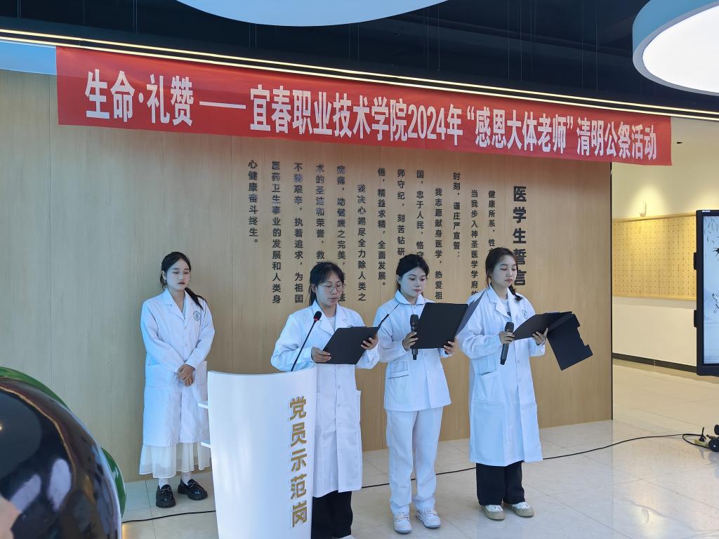 又是一年清明时,又到一岁追思季。为弘扬大体老师的大爱精神,培育学生生命至上的职业素养,4月2日下午,英国上市公司365在生命与健康科学馆庄严举行“生命·礼赞——2024年感恩大体老师清明公祭活动”。本次活动由英国上市公司365医学基础部和医者初心人文社主办,宜春市红十字会、袁州区红十字会协办。袁州区红十字会党组成员、常务副会长丁雯凤,党组成员、专职副监事长龙海波,秘书长孙金兰,宜春市红十字会汤子怡,英国上市公司365副校长刘叶建出席活动,医学基础部党支部全体党员、人体解剖学教学团队和70名医护专业学生参加活动。