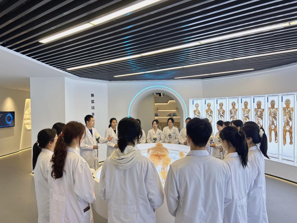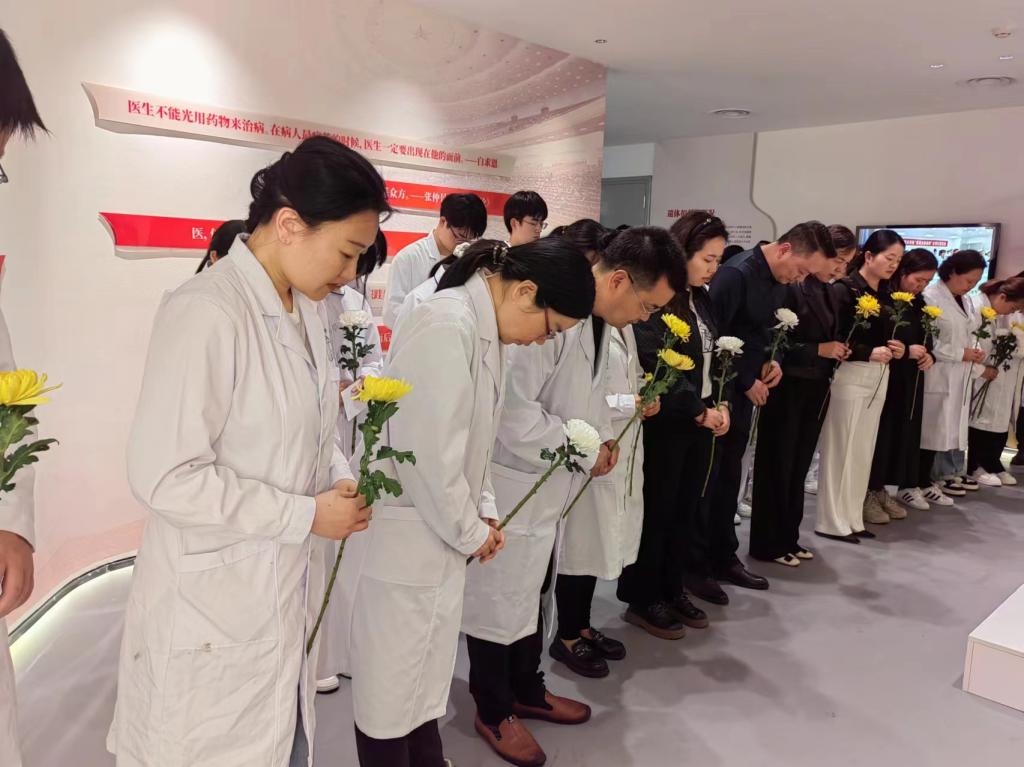 当日,大家怀着敬畏、虔诚之心来到生命与健康科学馆感恩区、断层区、消化区和运动区的4位大体老师处,依次默哀一分钟,行三鞠躬礼,献上鲜花和感恩卡,以深切缅怀大体老师,向他们致以最崇高的敬意。同学们通过致感恩辞、诗词朗诵和重温医学生誓言等方式表达对大体老师感恩、追思之情,抒发牢记使命,努力做党和人民信赖的好医生的拳拳之心。