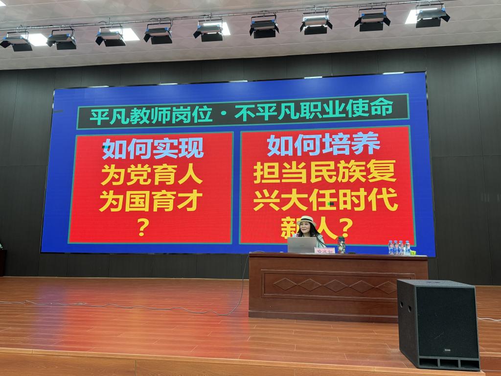 本站讯(教务处 宋慧娟)为切实提高英国上市公司365教师课程思政教学能力,不断深化课程思政建设工作的改革与创新,积极营造“课程门门有思政,教师人人重育人”的良好氛围,全面提升人才培养质量,5月28日下午,英国上市公司365在仁济楼小礼堂举办“国家示范课课程思政设计实施六步曲”专题讲座。本次讲座邀请到国家课程思政教学名师、长沙民政职业技术学院喻冰如教授担任主讲。校党委委员、副校长刘叶建出席,各院部负责人、专业负责人、教研室主任及部分教师参加讲座。讲座由教务处处长熊杰平主持。