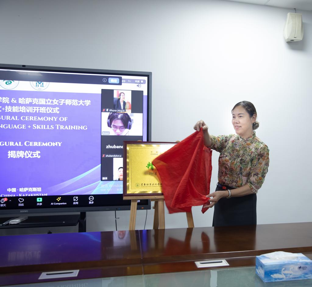 刘叶建首先发表致辞,她代表学校向哈萨克国立女子师范大学的领导和老师们表示衷心地感谢,并介绍了学校的办学历史、学科特色以及在国际合作方面所取得的成果。刘叶建表示学校将与哈萨克国立女子师范大学共同努力,依托“精一学堂”,充分发挥学校学前教育专业优势,进一步促进职业教育与国际中文教育的融合发展,为哈萨克斯坦学前教育行业的蓬勃发展贡献力量。