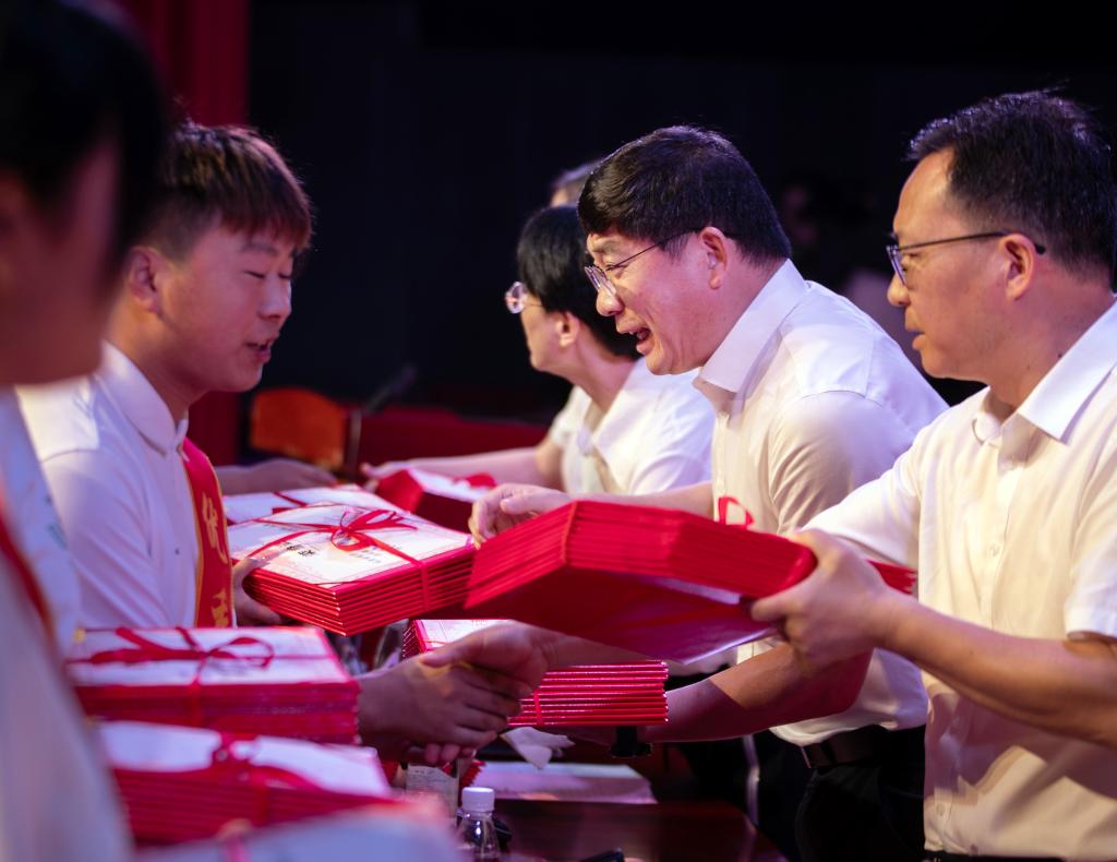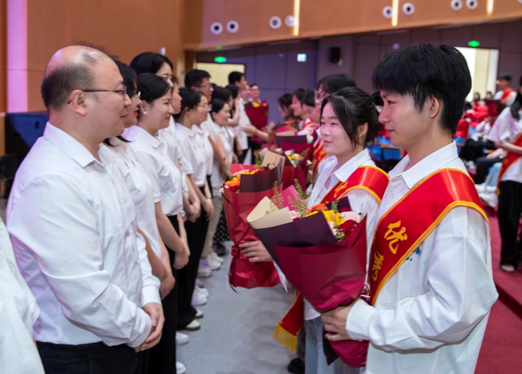 副校长刘江毅宣读优秀毕业生表彰决定,优秀毕业生代表们依次上台领取证书。