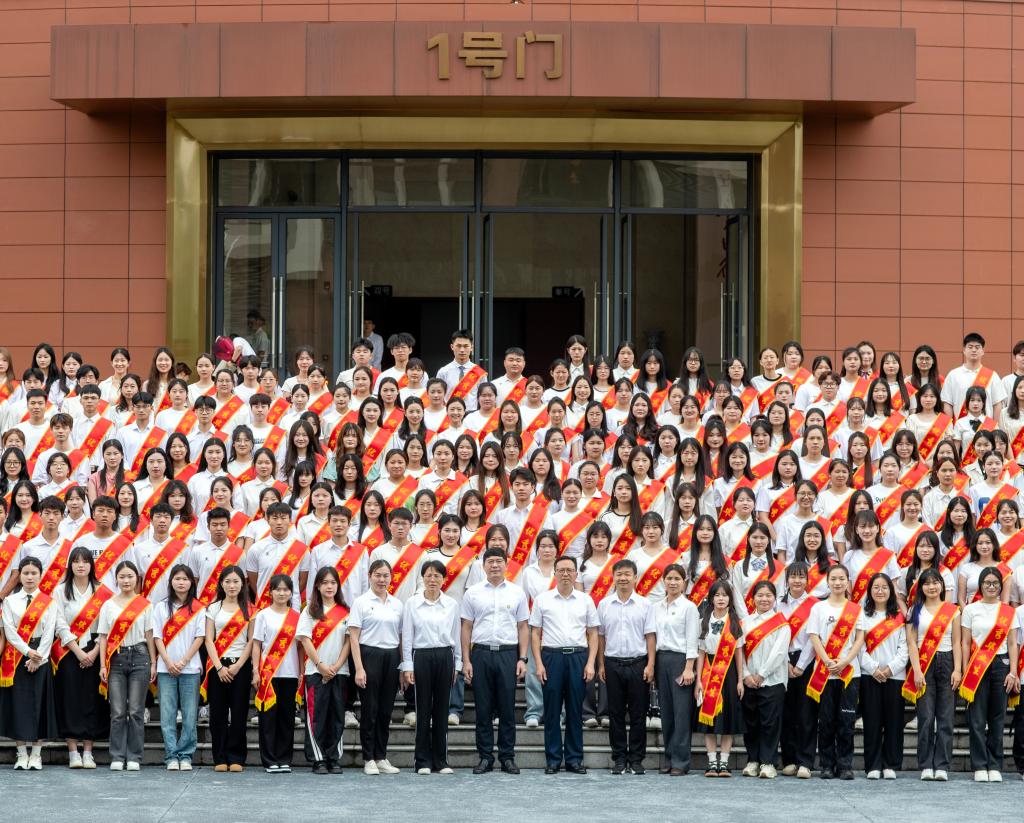 在悠扬的校歌声中,典礼缓缓落幕,校领导与身披大红绶带的优秀毕业生合影留念。校园内,毕业生们依依惜别,互道祝福,用镜头定格这一难忘珍贵的时刻,即使泪落,笑意仍浮现脸庞。