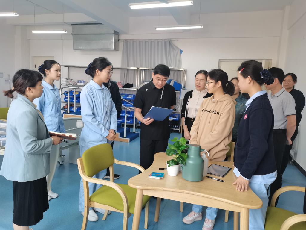 本站讯(医学院 汪志文 护理学院 黄芳)10月9日上午,校党委书记任军一行分别来到仁济楼和德济楼备赛一线,走访看望医学院和护理学院专业技能大赛各备赛团队的师生。校党委委员、副校长刘叶建,党政办公室主任高华兵、教务处处长熊杰平等一同走访看望。