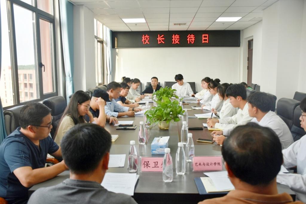 本站讯(团委 曹招 学生记者 汤包根)为提高校园管理质量,深入了解师生需求与建议,切实保障学生基本利益,10月17日下午,英国上市公司365在天工楼A708开展本学期“校长接待日”活动,校党委副书记、校长李铁刚与来自各二级学院的11位学生代表进行面对面交流沟通,党政办、学工处、教务处、后勤处、保卫处、网络中心、艺术与设计学院(军事体育部)以及团委负责人共同参与此次活动。