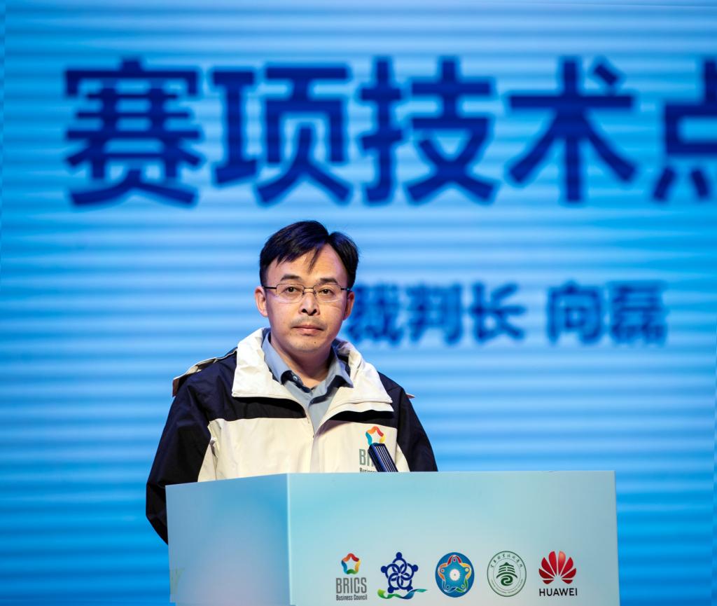 闭幕式上,向磊作赛项技术点评。他对各位参赛选手的精彩表现给予了充分肯定,指出本次大赛呈现出如下特点:参赛选手范围广泛、比赛项目设置合理、选手竞技水平高,并围绕选手心理素质、综合能力、赛事组织方面提出了改进建议。