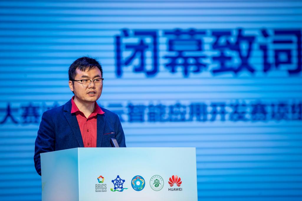 张华桥致闭幕辞,他从赛前直播、技术规程制定、场景题目设计、赛事举办四个方面对本次大赛进行了全方位回顾,他坚信,大赛达到了以赛促学的效果,对人才培养起到了积极推动作用,向为赛事举办默默付出的工作人员表示衷心感谢。