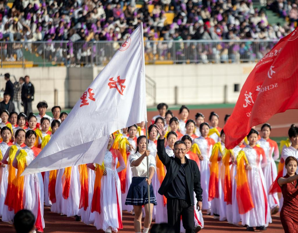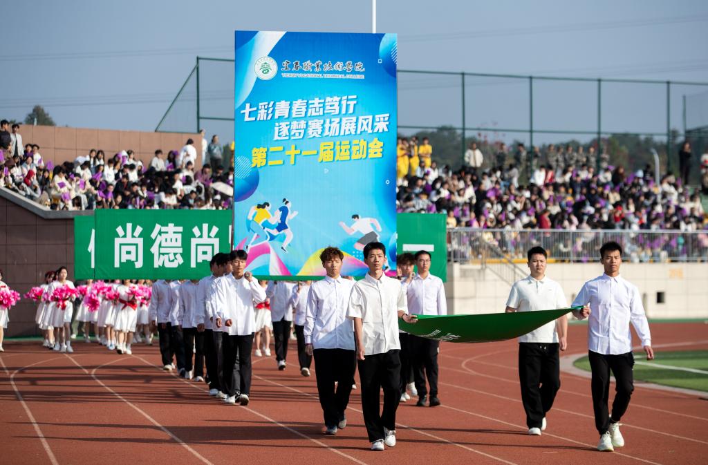 李铁刚致开幕辞。他指出,校运会的召开是深入学习贯彻落实党的二十大和二十届二中、三中全会精神,积极参与体育强国建设的自觉行动,也是深化“五育并举”,落实立德树人根本任务的有力举措。他提出三点希望:希望能弘扬宜职精神,将运动场上所展现的激情和豪情转化为为学校努力奋斗的动力,突破自我,超越自我,实现自我,让青春在拼搏中绽放光芒;希望能展示宜职体育新风貌,进一步检阅宜职体育工作新发展,展现宜职群众体育、竞技体育新成果。希望能助推宜职健康新风尚,牢固树立“健康第一”思想,树立终身体育的观念,将迈进奋发体育场,走进鲲鹏体育馆当做宜职健康的新风尚、新时尚,开拓创新、勇于争先,奋力谱写中国式现代化的宜职篇章。