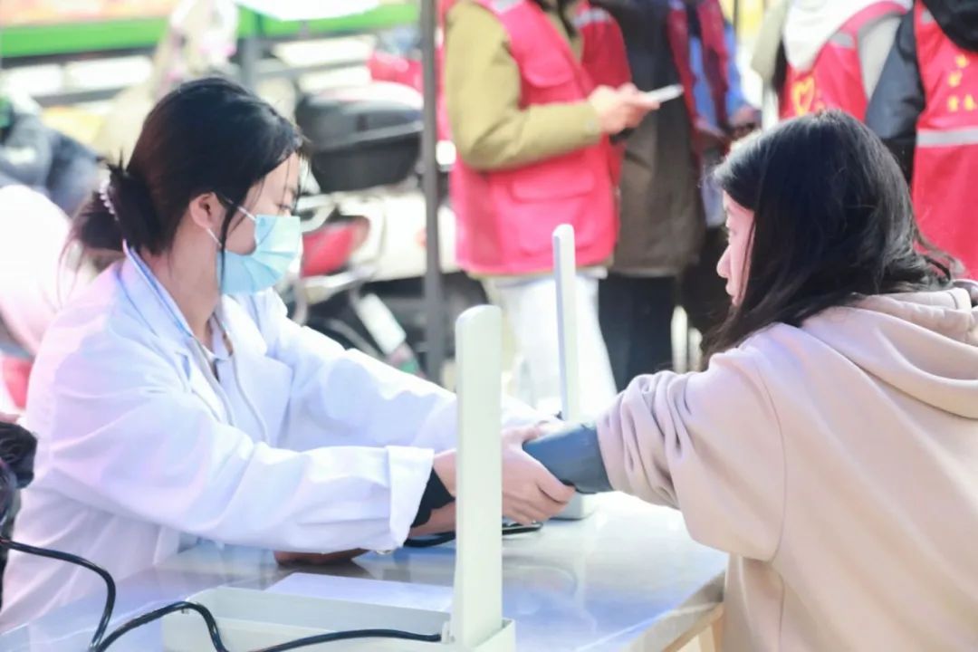 机关第六党支部则将爱心缝纫室搬至活动现场,同学们三两成群前来求助,党员教师们热情地接待学生,帮助学生缝补衣物,耐心教授他们缝补技巧和衣物保养、清洁相关的小妙招儿。“同学,你血压很正常哦”“同学,你有点低血压,平时不要熬夜哈,适当进行锻炼……”医学院以及护理学院青年志愿者协会的同学们则充分发挥专业特长,在现场开展起了“义诊进校园,温暖你我他”“守护健康测血压”活动,他们在现场为同学们免费测血压,让同学们深入了解自己的血压状况,更加关注自己的身体。