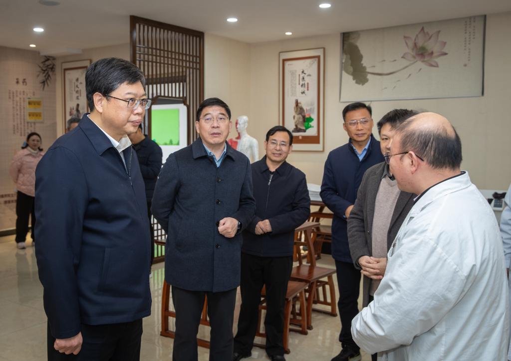 在中医体验馆,石军英深入了解艾灸、推拿等传统中医项目和学校特色学科建设情况。他指出,要传承创新中医药文化,持续推进特色学科建设,培养具有系统中医思维、扎实临床实践能力的高素质中医药人才。