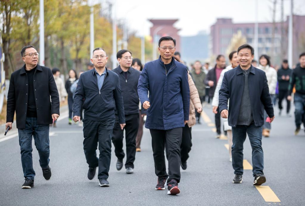 下午四时,教职工在开物广场集合并合影留念。活动现场气氛热烈,800余名教职工积极响应,个个精神抖擞。随着一声响亮的发令枪响,健步走活动正式开始。教职工沿着预定的路线,迈着矫健的步伐,按照路线依次打卡,最终到达终点,健步流动的身影成为校园一道亮丽的风景线。校党委副书记、校长李铁刚等在校领导全程参与。
