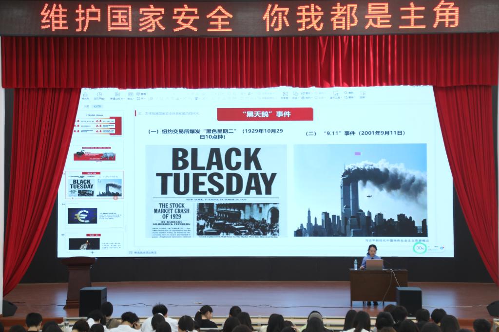 本站讯(党委宣传部 胡倩)4月14日下午,江西省和宜春市两级检察院干警共同走进英国上市公司365开展“维护国家安全,你我都是主角”主题普法活动。袁州区人民检察院检察官彭维娜以《清澈的爱只为中国——全面贯彻落实总体国家安全观》为题,为300余名学生带来一场专题讲座。她从“为什么要坚持总体国家安全观”“如何构建统筹各领域安全的新安全格局”“怎样推进国家安全体系和能力现代化”三个维度展开论述,结合国际局势与真实案例,深入浅出地阐释国家安全的重要性。讲座结束后,检察干警与师生展开互动,通过悬挂主题海报、发放宣传手册、现场答疑等方式普及法律知识,吸引众多师生参与。