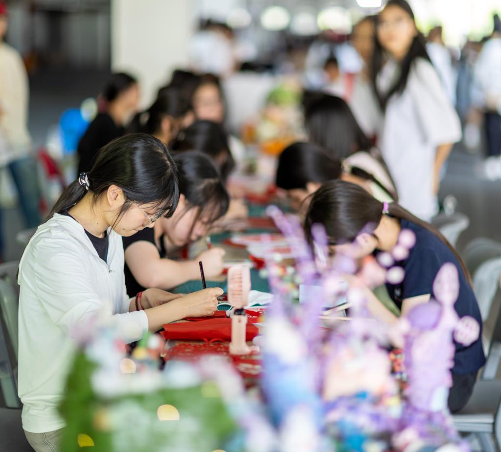 心理啦啦操表演展示了宜职学子活力与健康;护理学院学生现场演示婴儿抚触、心肺复苏、协助老人使用助行器、中药养生等技能,动作规范、操作娴熟,充分展现“白衣天使”的专业素养;医学院的数字化皮肤检测、推拿保健按摩、心肺复苏、海姆立克法展示吸引众多师生参与互动;一张张红纸在师范学院学生的手下变成一朵朵鲜花、一个个笑脸,心灵手巧体现得淋漓尽致。