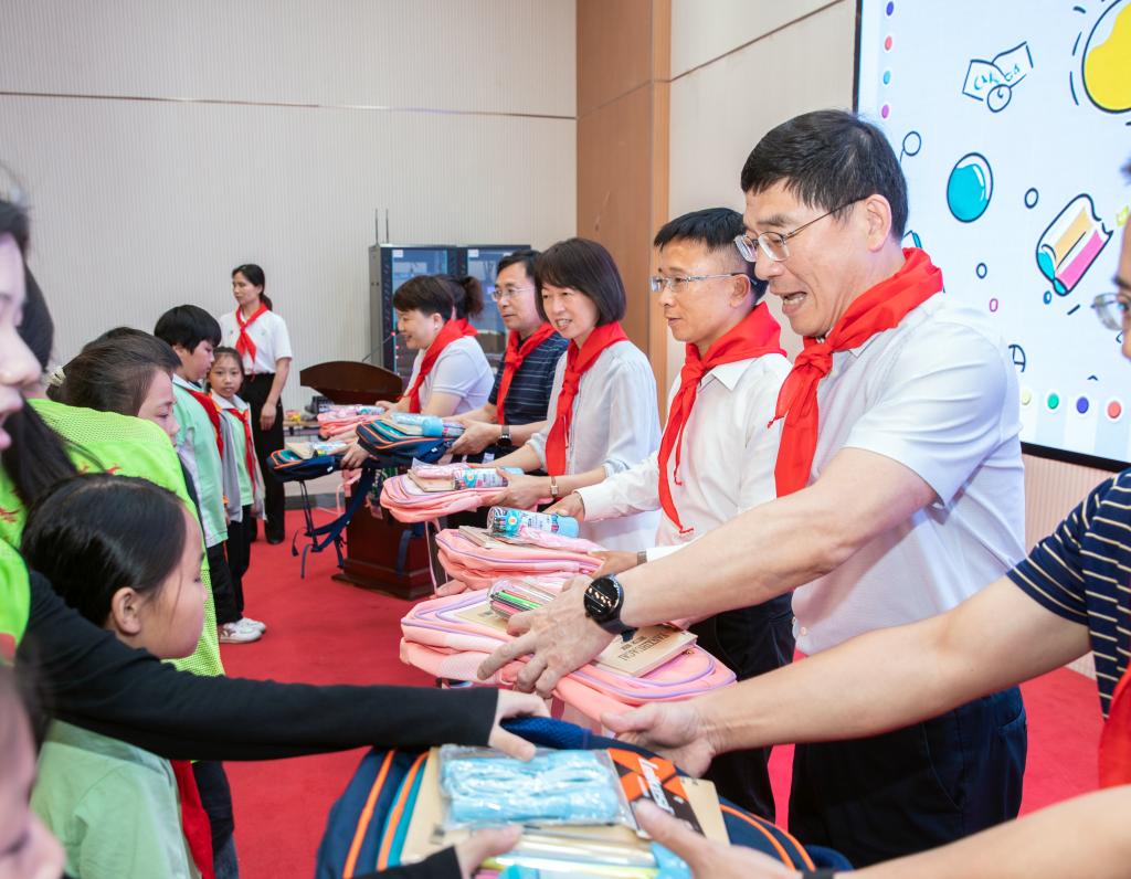 参观的兴奋余温未散,孩子们步入学术报告厅。活动伊始,少先队员们迈着整齐的步伐上台,为领导嘉宾佩戴上鲜艳的红领巾。任军在致辞中深情寄语:“孩子们,你们眼中闪烁的好奇光芒,正是创新的火种。大学不仅是知识的殿堂,更是梦想启航的港湾。愿今日所见所闻,能在你们心中种下爱科学、学科学、用科学的种子,愿你们永远保持对世界的好奇,对知识的热爱,勇敢地去探索未知的世界,去创造属于自己的精彩人生!”亲切的话语如春风拂过,台下掌声如潮。