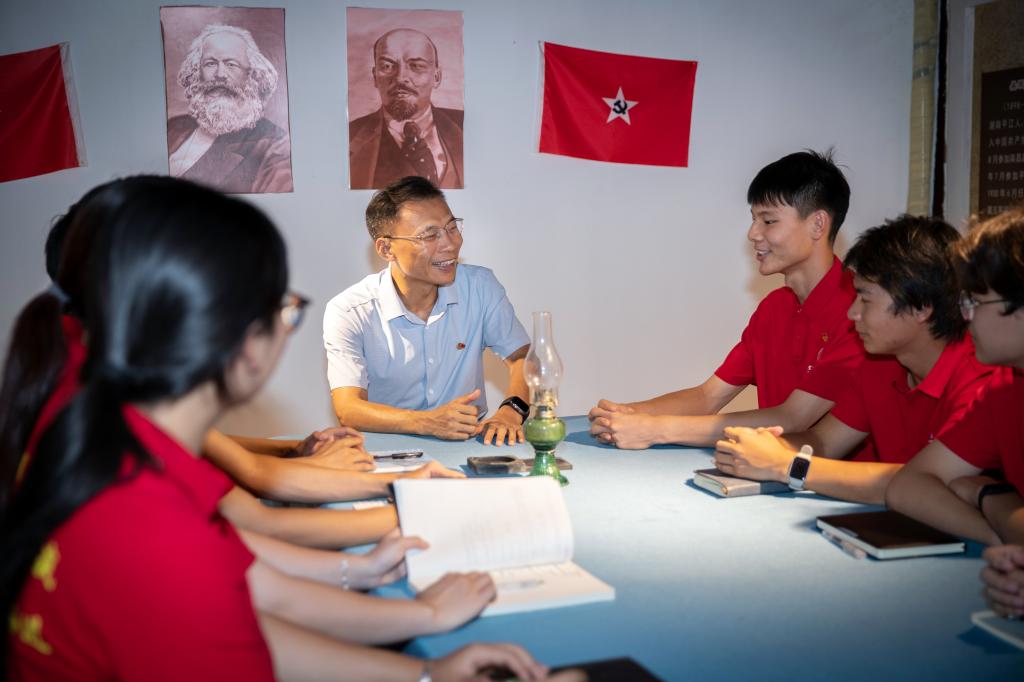 在袁州会议旧址,校长李铁刚为同学们带来了一场别开生面、饱含温度与力量的思政课。现场,实践队员依次分享了3天以来的学习心得,李铁刚勉励队员们要将此次研学的收获转化为思想的养分,铭记先烈事迹,用革命传统的奋斗精神武装自己的头脑,传承和发扬苏区精神,把个人理想融入民族复兴的伟大征程,用奋斗书写青春华章。