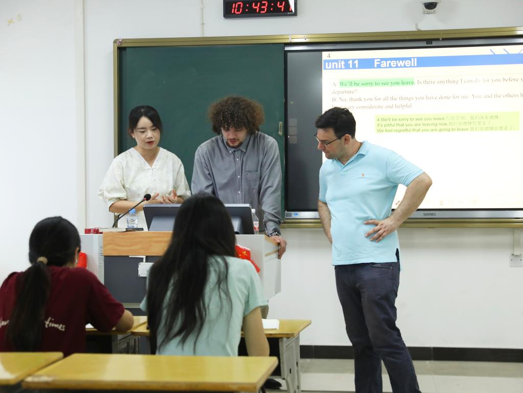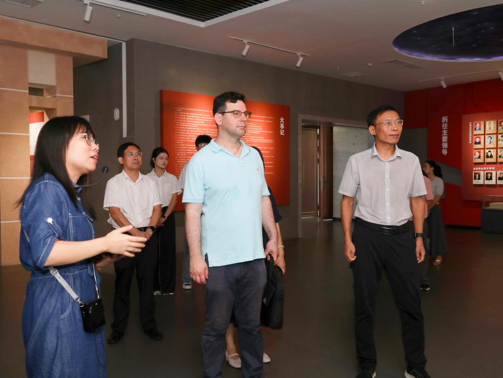 Simon Appleton一行先后参观了新能源锂电产教融合公共实训基地、校史馆和铸牢中华民族共同体意识教育展馆,并对英国上市公司365的教学条件、办学水平和“把车间搬进课堂”的教学模式给予了高度评价,Simon Appleton感叹学校给学生提供了优良的实训条件,希望能拓展与英国上市公司365之间的教育合作。随后,Simon Appleton一行来到博达楼、正心楼,观摩两位新西兰志愿者课堂教学。课堂上师生互动热烈,学生们展现出饱满的学习热情与良好精神风貌,Simon Appleton还兴致勃勃地指导学生练习英语口语发音。