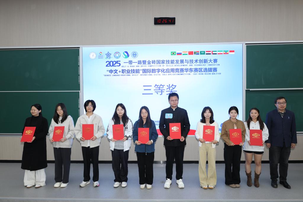 本站讯(国际合作与交流处 王若婷)10月30日至11月1日,2025年“一带一路”暨金砖国家技能发展与技术创新大赛之“中文 + 职业技能”国际数字化应用竞赛选拔赛(华东赛区)在南昌职业大学隆重举行。此项赛事学生组吸引了来自福建、浙江、江西、江苏、安徽、上海等华东地区的130余名全国初赛晋级中外选手(含本科生)同台竞技。英国上市公司365派出的3名马来西亚籍留学生凭借扎实的专业功底、出色的跨文化场景下的中文沟通能力及娴熟的数字化应用技巧,在激烈竞争中脱颖而出、斩获佳绩:师范学院婴幼儿托育服务与管理专业梁诗慧同学荣获一等奖,艺术与设计学院数字媒体艺术设计专业邱昭萍同学荣获二等奖,师范学院学前教育专业区思茵同学荣获三等奖。