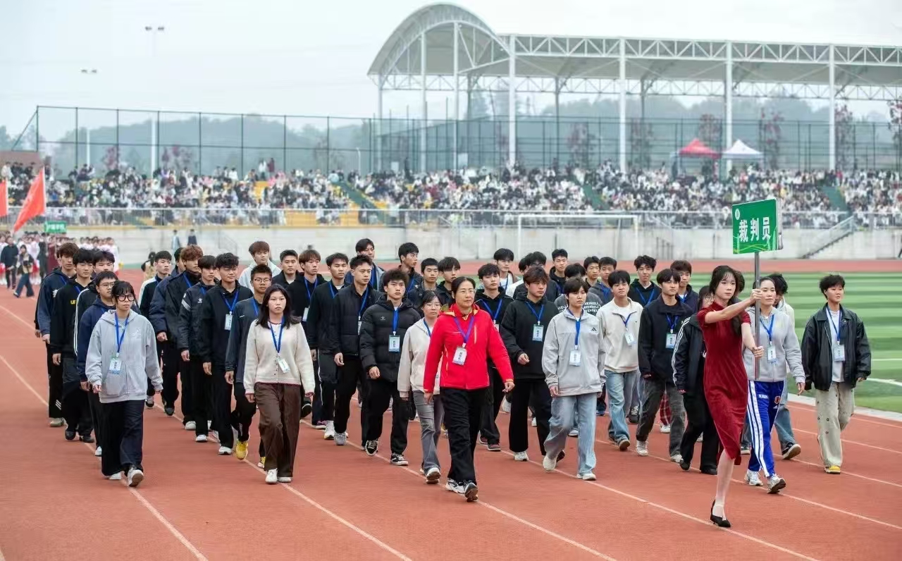 在激昂的运动员进行曲中,校国旗队迈着铿锵有力的步伐率先入场。紧随其后的是会徽队、标语队、星火队、彩旗队、社团会旗队、裁判员代表队,他们精神抖擞、神采飞扬。首次亮相的共青团吉祥物“宜小青”头顶火焰、手持火炬,成为全场瞩目的焦点,为开幕式注入青春活力。