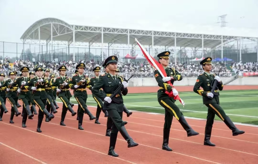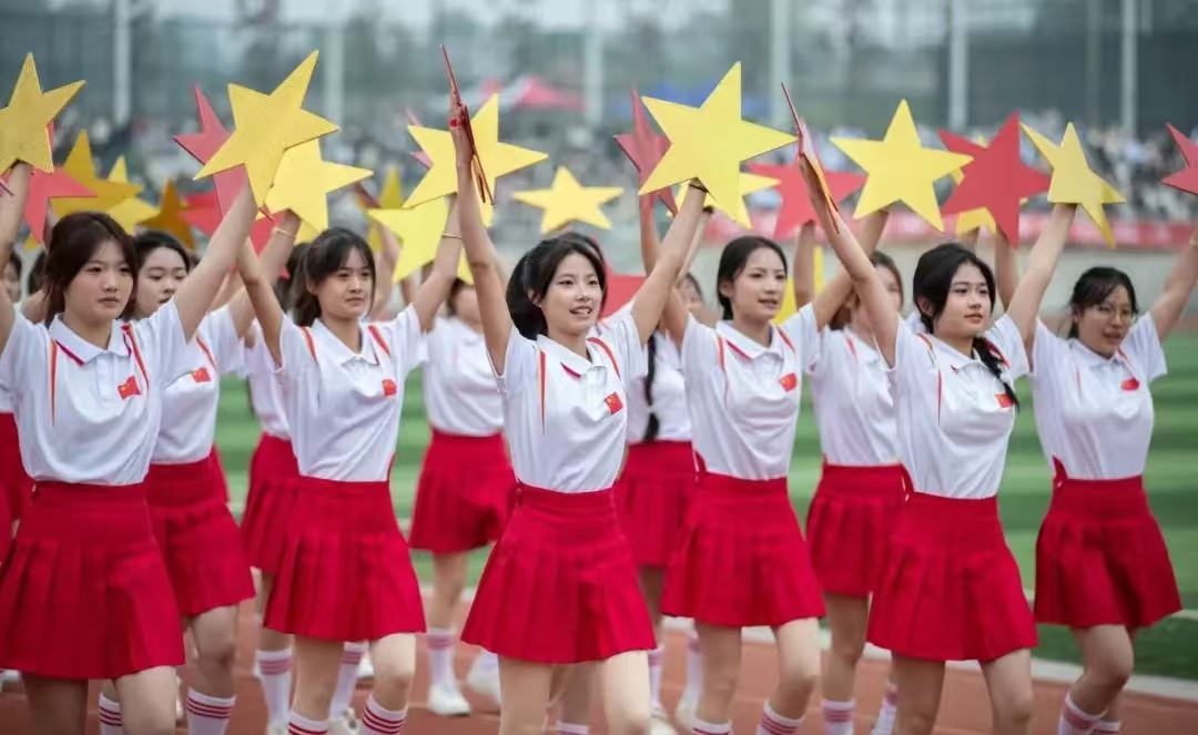 各学院方阵以多样风采绚丽登场。护理学院代表队手持向日葵,在场中巧妙变换出爱心形状,用温暖意象诠释白衣天使以爱守护生命的坚定誓言;师范学院方阵中,绚丽的彩带随舞姿飞扬流转,交织出激情、缤纷的青春图景;艺术与设计学院代表队身着蓝白渐变长裙,步履轻盈,在翻飞的红旗间跃动起舞,尽显艺术气质与蓬勃朝气……其余学院方阵也各具特色,或身披白大褂诠释医者仁心,或身着迷彩服尽显飒爽英姿,或挥动彩扇、红旗,共绘新时代青年学子的昂扬风貌。由马来西亚、蒙古国的留学生组成的方阵首次登场,成为开幕式上一道亮丽的风景线,书写出“技能无国界,文化共交融”的生动篇章。