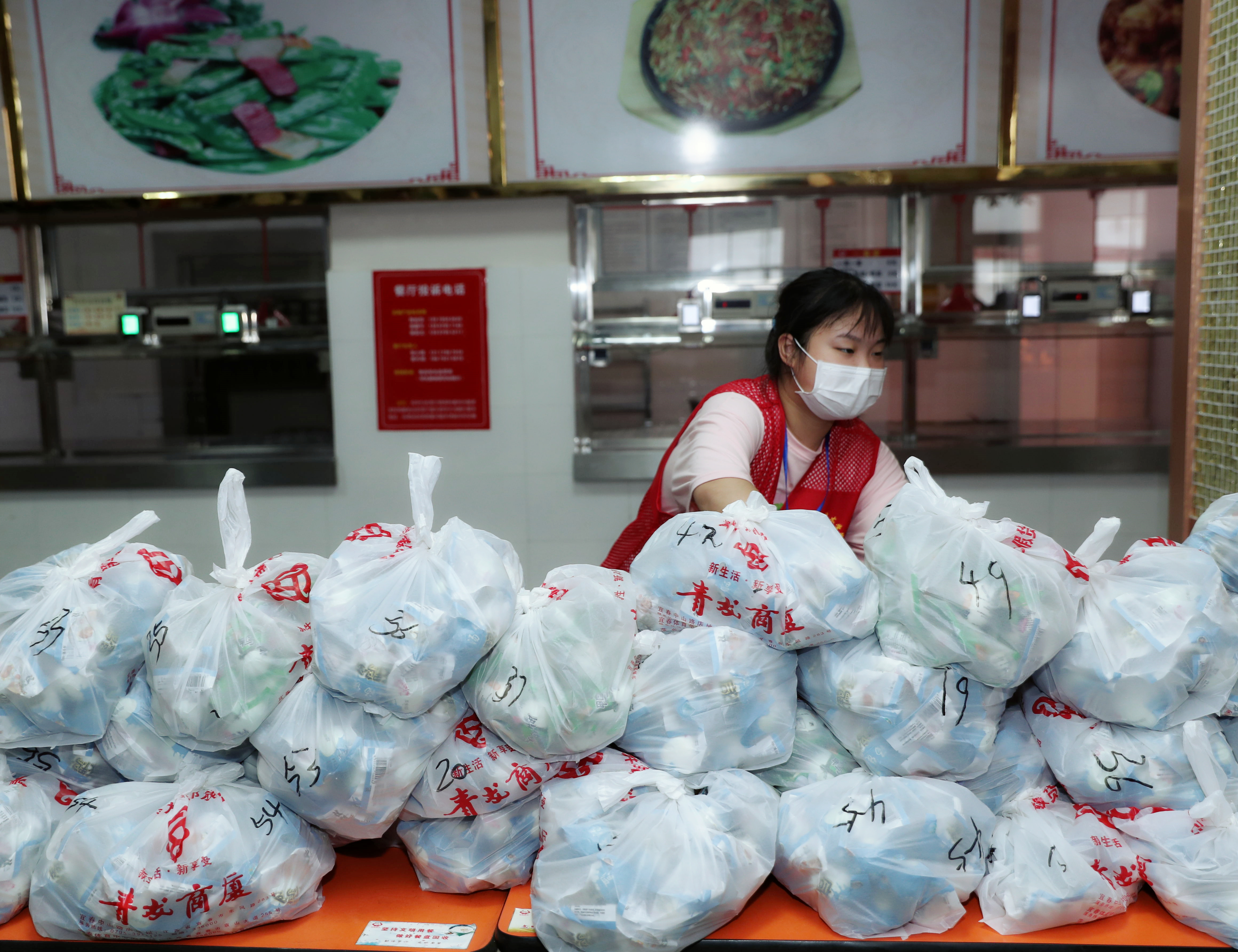 “快去领粽子啦!”今天一大早,北校区第一食堂、膳食中心和南校区食堂便排起了长龙,各班学生代表按照一米间距排队领取学校为同学们精心准备的爱心粽子和咸蛋。