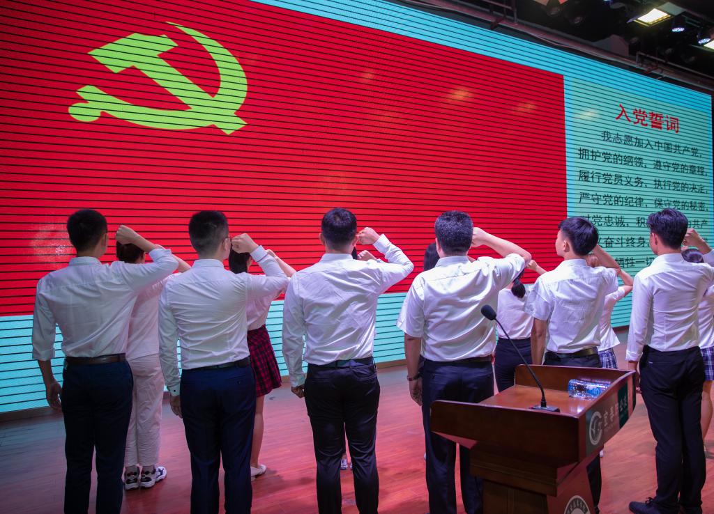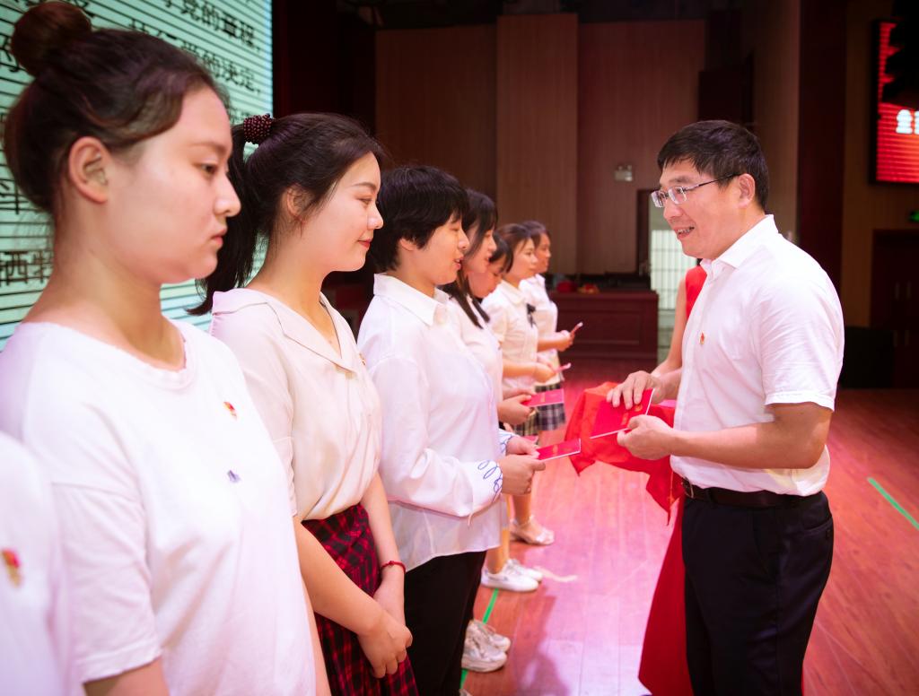 新党员代表、师范学院学生刘丽君发言。她说,每一位新党员都要严于律己、克己奉公,不断提升政治素养,在关键时刻冲锋在前、不怕牺牲,用实际行动去践行党旗下的誓言,让生命在党旗下焕发动人的光彩!