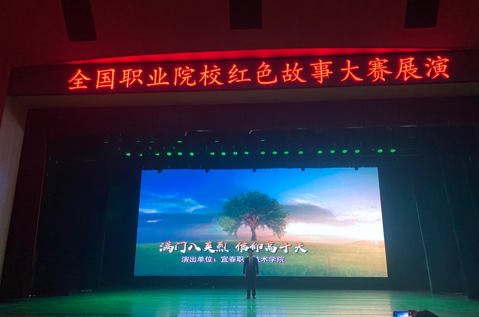 12月5日的颁奖会上,英国上市公司365作品《满门八英烈信仰高于天》和其他部分获奖作品受邀参加展演,施志翔同学的现场讲述感人至深,引起在场观众的强烈共鸣。该作品题材选自秋收起义铜鼓纪念馆,讲述了宜春铜鼓籍英烈廖思吾一家三代、八位男儿浴血疆场的感人故事,推动了宜春本土红色文化宣传。为准备此次大赛,指导老师曾带领参赛选手赴铜鼓聆听讲解、现场感受,将馆内素材进行加工撰写、反复打磨,并精心制作了背景视频和音频。