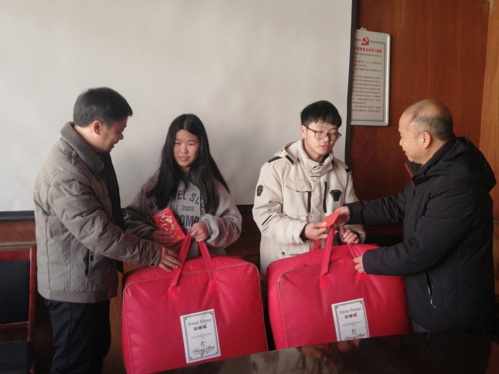 廖校长亲切地询问了两位贫困生的家庭情况及在校表现,并鼓励学生不畏困难,努力学习。廖校长对学生们说道,家庭的现实状况并不能决定什么,这些困难都是一时的,重要的还是要靠自己,只有自己学好本领,才能为自己和家庭赢得更好的未来。座谈会后,廖校长与王院长为困难学生送上了慰问金和慰问品。
