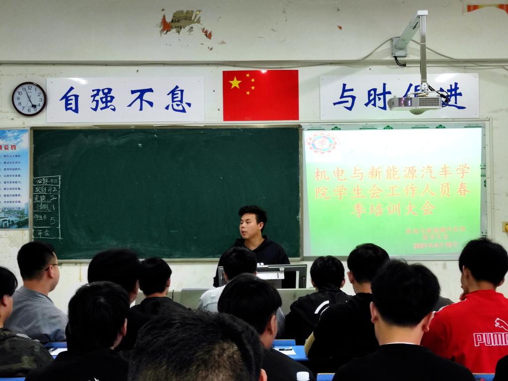 本站讯 (机电与新能源汽车学院 周勤 学生记者 朱安可)为提高学生会工作人员队伍的素质,增强服务能力和创新实践能力,加强责任意识、大局意识,发挥模范带头作用,了解新形势下学生会改革的具体目标及端正学生会工作人员服务态度问题。4月19日下午,机电与新能源汽车学院学生会在第一教学楼X806教室召开了学生会工作人员春季培训大会。本次培训由我院学生会执行主席张伟主持,院全体学生会工作人员参加。
