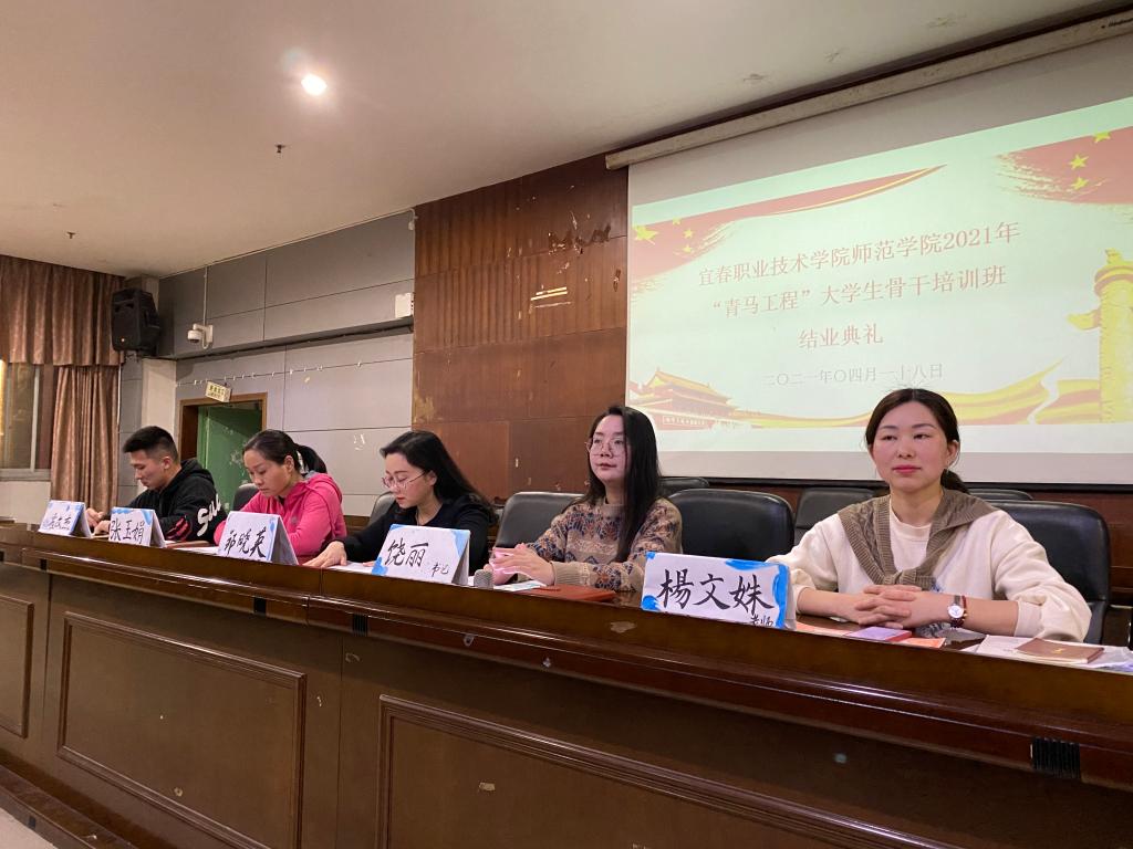 本站讯(师范学院 霍文杰 学生记者 谢年峰) 2021年4月19日晚,师范学院2021年“青年马克思主义培养工程”培训会在第一教学楼9楼报告厅顺利闭幕,师范学院党总支书记邹晓英,党总支副书记饶丽、张玉娟,团总支书记杨文姝,辅导员霍文杰出席结业典礼。