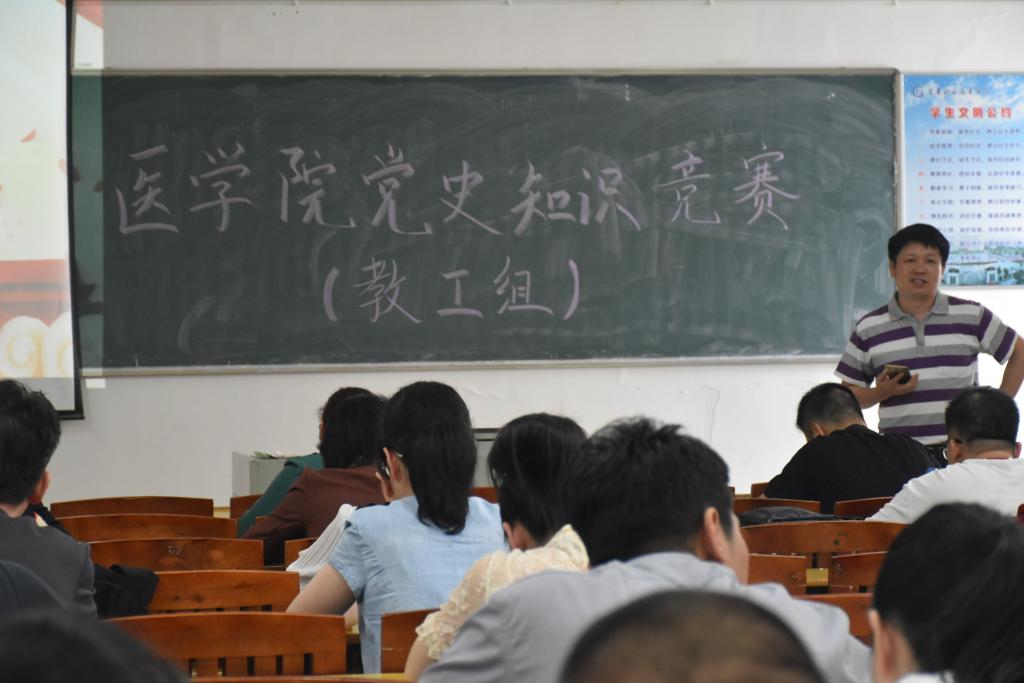 本站讯(医学院 付颖强)为庆祝建党100周年,医学院党总支积极推进党史学习教育,在全院师生中营造“学党史、悟思想、办实事、开新局”的浓厚氛围,5月11日下午3点,在南校区第四教学楼311开展医学院教职工党史知识竞赛活动。