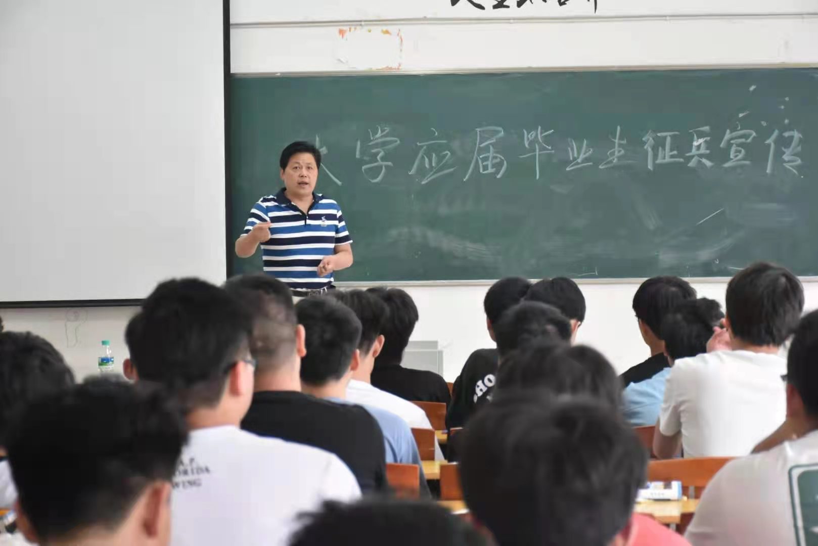 贺忠首先就所有人最为关心的征兵的就学、就业、经济补助等方面政策进行了详细的解释说明,随后又向学生们介绍了2021征兵工作的预政对象、身体条件等情况。接着又对学生提出的有关学费减免、落户要求、复学助学等相关问题做出了回答,会场气氛十分热烈。最后,贺忠老师阐述了大学生入伍对只身塑造贺锻炼成才的重要意义并希望各年级负责人做好相对应的指导工作。