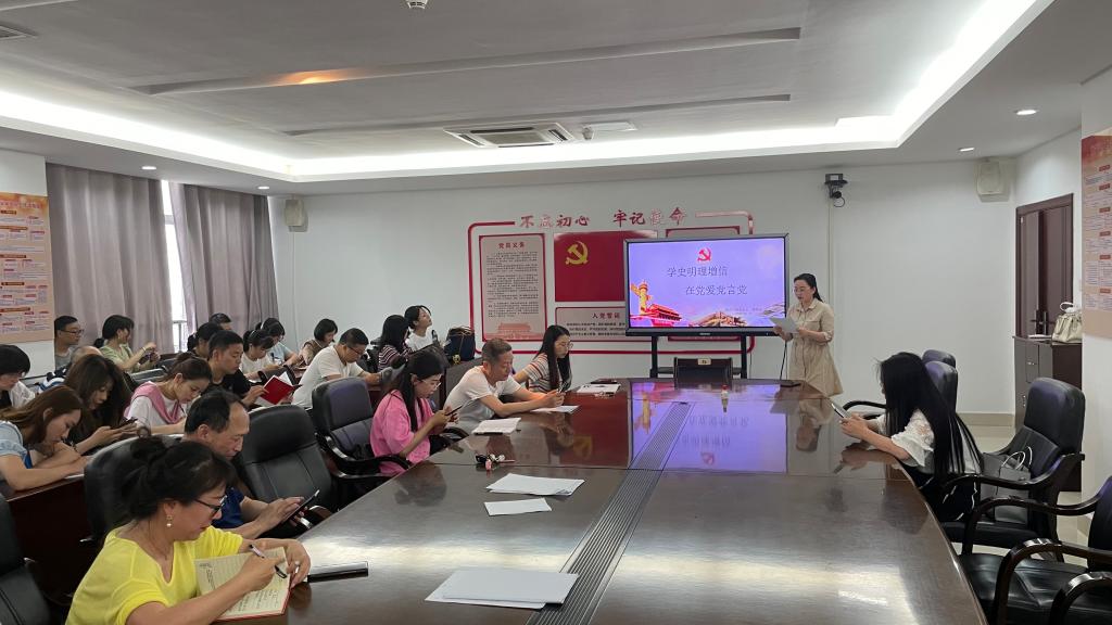 邹书记首先向大家阐述了学习党史的重要性及相关学习要求,要求党员同志们努力做到学史明理、学史增信、学史崇德、学史力行,真正以党史照亮前行之路,以党史洗涤心灵之尘、以党史激发奋进之力。其次,整堂微党课以时间为轴,从中国共产党建党之时一直延伸到百年华诞之际,从中国共产党的危亡时刻一直讲到中华民族的伟大复兴,中国共产党百年奋斗的光辉历程,让在座的每一位党员都感到无比骄傲与自豪。在党课的最后,邹书记总结了党史学习的意义所在,知所从来,方明所往。她鼓励每一位党员同志应努力学习党史,以史为镜、以史明志,深刻认识和铭记中国共产党百年奋斗的光辉历程,开创属于我们这一代人的历史伟业。
