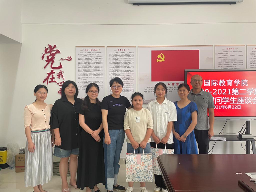 本站讯(国际教育学院 金岩)为有效落实学校资助政策,给予家庭经济困难学生更多关怀和帮助,6月22日上午,国际教育学院在党员活动室401开展慰问学生座谈会。座谈会由党总支书记刘海云主持。校党委委员刘江毅副校长、我院领导班子成员以及相关班主任和受助同学参加了座谈。