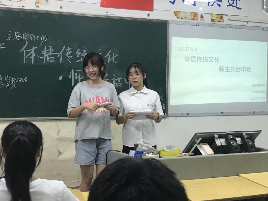 本站讯(国际教育学院 朱媛 学生记者 陈阳平)为进一步提升我院学生对传统节日的深入了解,增强对中国传统节日的高度重视,体现对家国情怀的深层理解,国际教育学院于9月21日晚在各班举行了以“体悟传统文化·师生共话中秋”为主题的团日活动。