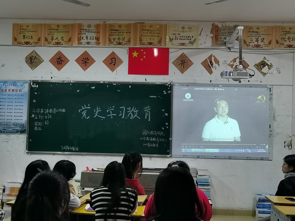 本站讯(国际教育学院 杨琨)在中国共产党员成立100周年大会的重要讲话中,习近平总书记强调“未来属于青年,希望寄予青年”。为激励我院新生奋发有为、勇敢担当,引导广大新生学好党史、做强国路上的有为青年,根据国际教育学院2021级新生入学教育安排,我院2021级全体新生于10月12日上午8点半在各班教室参与了新生入学党史学习教育,新生班主任到场主持学习与交流。
