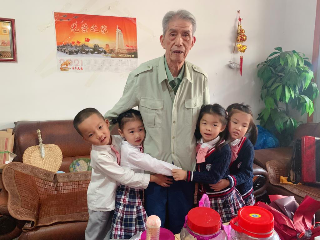 党支部一行来到抗美援朝老战士曾力堂老爷爷家中,看望曾老及其爱人,关切地询问曾老目前健康状况,陪曾老聊天谈心,还为曾老送上慰问物品和节日祝福,幼儿代表还将自己亲手制作的节日礼物,送给爷爷奶奶并为爷爷奶奶表演了一首简短的儿歌祝福她们身体健康,重阳节快乐!