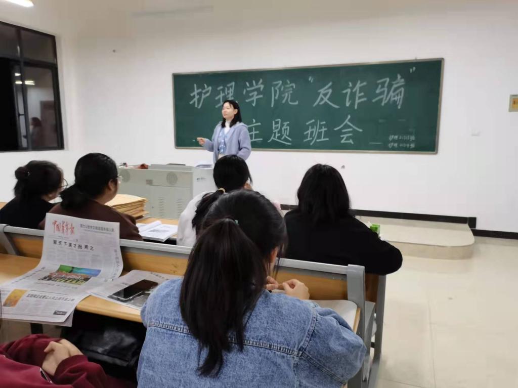 本站讯(护理学院 刘明健 学生记者 卢青艺)为进一步提升学生预防诈骗能力,增强安全防范意识,切实保护人身财产安全,积极建设平安校园。11月14日晚,护理学院在全院各班召开了“防诈骗”主题班会,班会由各班班主任主持,全体同学参加。