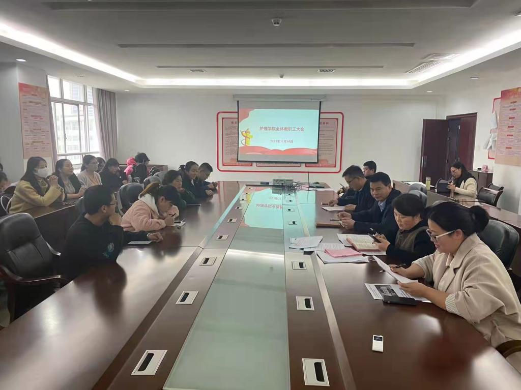 本站讯(护理学院 刘小三)11月16日下午,护理学院在科技综合楼815会议室召开全体教职工大会,会议由护理学院院长熊杰平主持,全院教职工参加。