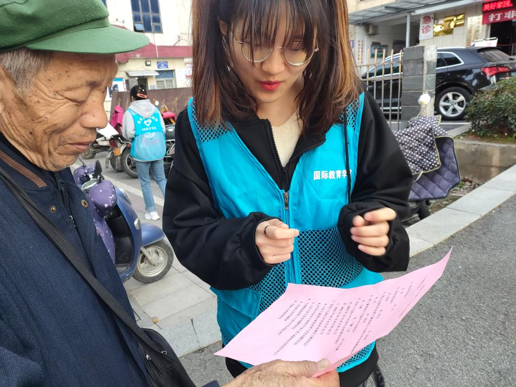 本站讯(国际教育学院 朱媛 学生记者 潘晓)为学习宣传贯彻党的十九届六中全会精神,弘扬伟大建党精神,强化青年责任担当,国际教育学院18高英教1班团支部于12月1日下午在宜春市袁州区中山西路开展了“我学习,我宣传,我践行”为主题的雷锋活动,本次活动由国际教育学院学工科科长杜欣宇带队。
