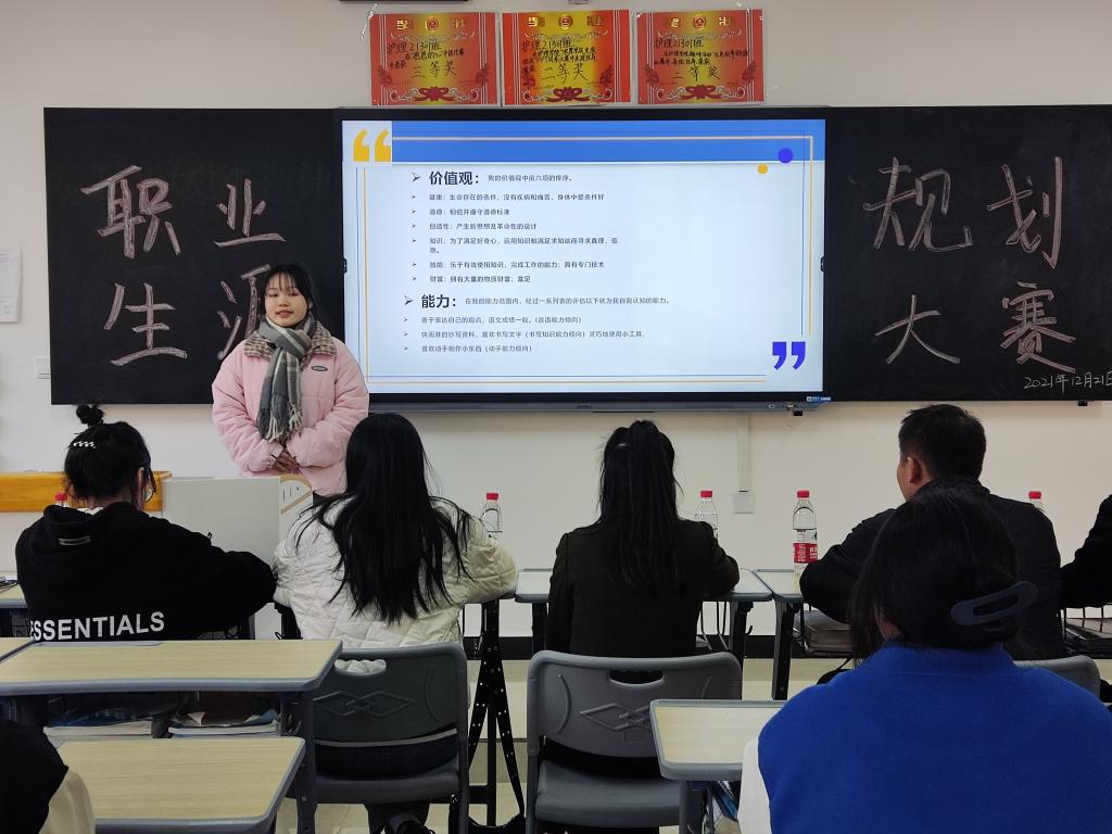 本站讯(护理学院 刘明健 学生记者 周宇 欧阳文涛)为进一步引导我院青年大学生树立正确的职业目标和人生目标,明确未来发展方向,提高就业竞争力和综合素质,护理学院于2021年12月21日在和济楼C103教室举办了“激扬青春,憧憬未来”新生职业生涯规划大赛。