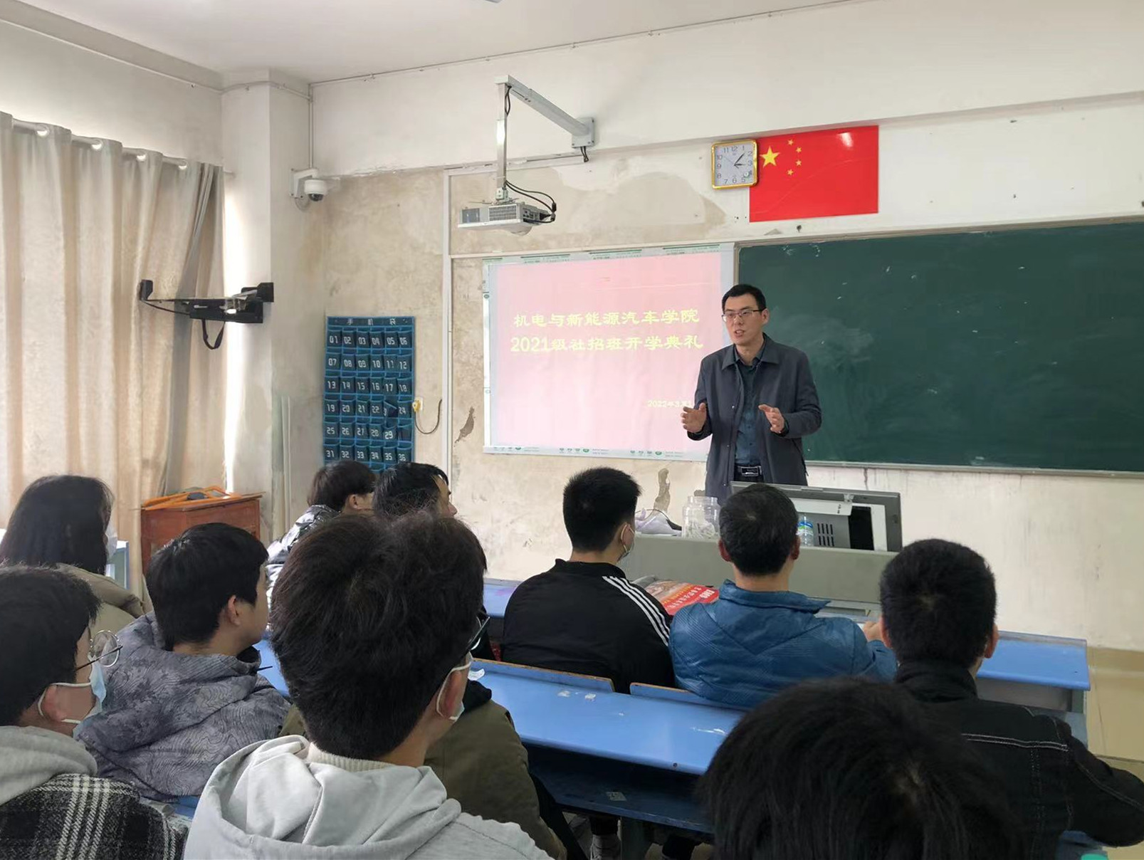 本站讯(机电与新能源汽车学院 周勤 学生记者 廖建星)3月1日下午,机电与新能源汽车学院在第一教学楼八开展2021级社招班开学典礼,出席人员有机电与新能源汽车学院副院长吴东平、院党总支副书记宋秋奴、团总支书记兼班主任周勤及21级社招班全体新生,会议由周勤主持。