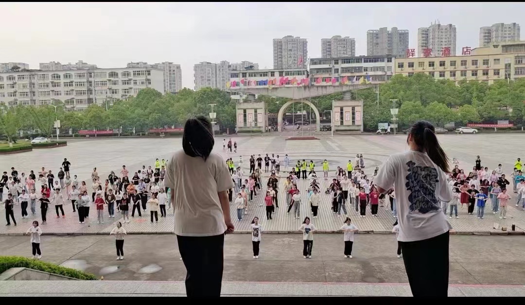 为响应疫情防控工作,此活动分为线上和线下开展。线上由宜职大通社的学生负责通过官抖直播;线下参与活动的学生在工作人员引导下到达指定位置,并保持前后左右间距1米以上。活动伊始,由领舞同学带领大家暖场热身,大家认真仔细,保障身体各关节充分活动开。伴随《本草纲目》动感十足的音乐,学生们纷纷跟着领舞同学起舞,用心怒放,将青春的活力尽情挥洒。温热的太阳洒向每一位活力四射的学生,不一会儿大家的额头上都冒出了一粒粒汗珠,在领舞的同学的带领下,学生们的舞步成了宜职闭环期间最靓丽的一道风景线。