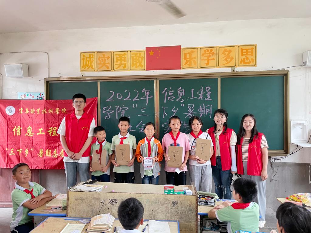 本站讯(信息工程学院 刘嘉妮)为深入学习习近平总书记在庆祝中国共产主义青年团成立100 周年大会上的重要讲话精神,为引导和帮助广大青年学生上好“大思政课”,在社会课堂中“受教育、长才干、作贡献”,推进专业+志愿服务、党建带团建与助力乡村振兴有机融合,助力乡村教育,6月17日,信息工程学院前往柏木乡开展科技文化“三下乡”暑期社会实践活动,由我院党员教师及学生志愿者共同组建“筑梦青春”志愿实践队。