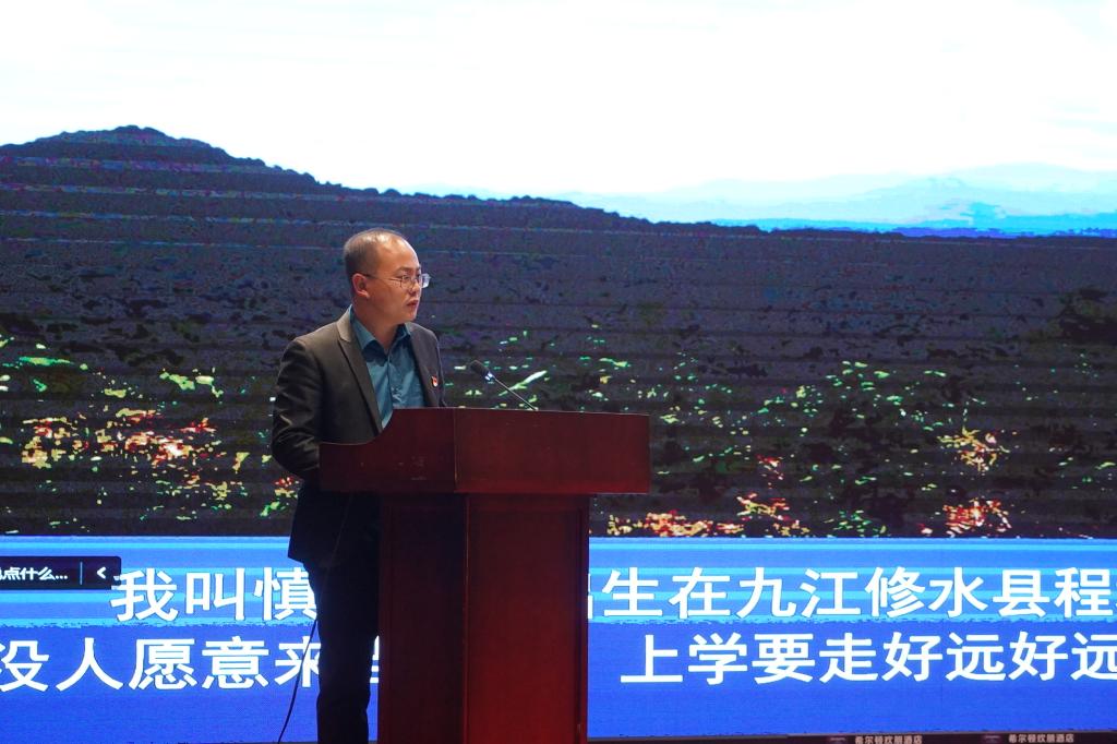 让同学们触动最深的是全国最美教师慎魁元在乡村教育中无私奉献的点滴生活。“多雨季节,滚落泥石,也阻挡不了我前进的路。”慎老师用朴实无华的语言向大家讲述了他为农村孩子、为乡村教育振兴做出的点滴奉献,诠释了一片丹心洒热血、一身秉烛铸名魂的教育精神,这种不计得失、无私奉献的教育初心,激励着在场的每一位定向师范生在今后的教育生涯中砥砺前行,踔厉奋发。