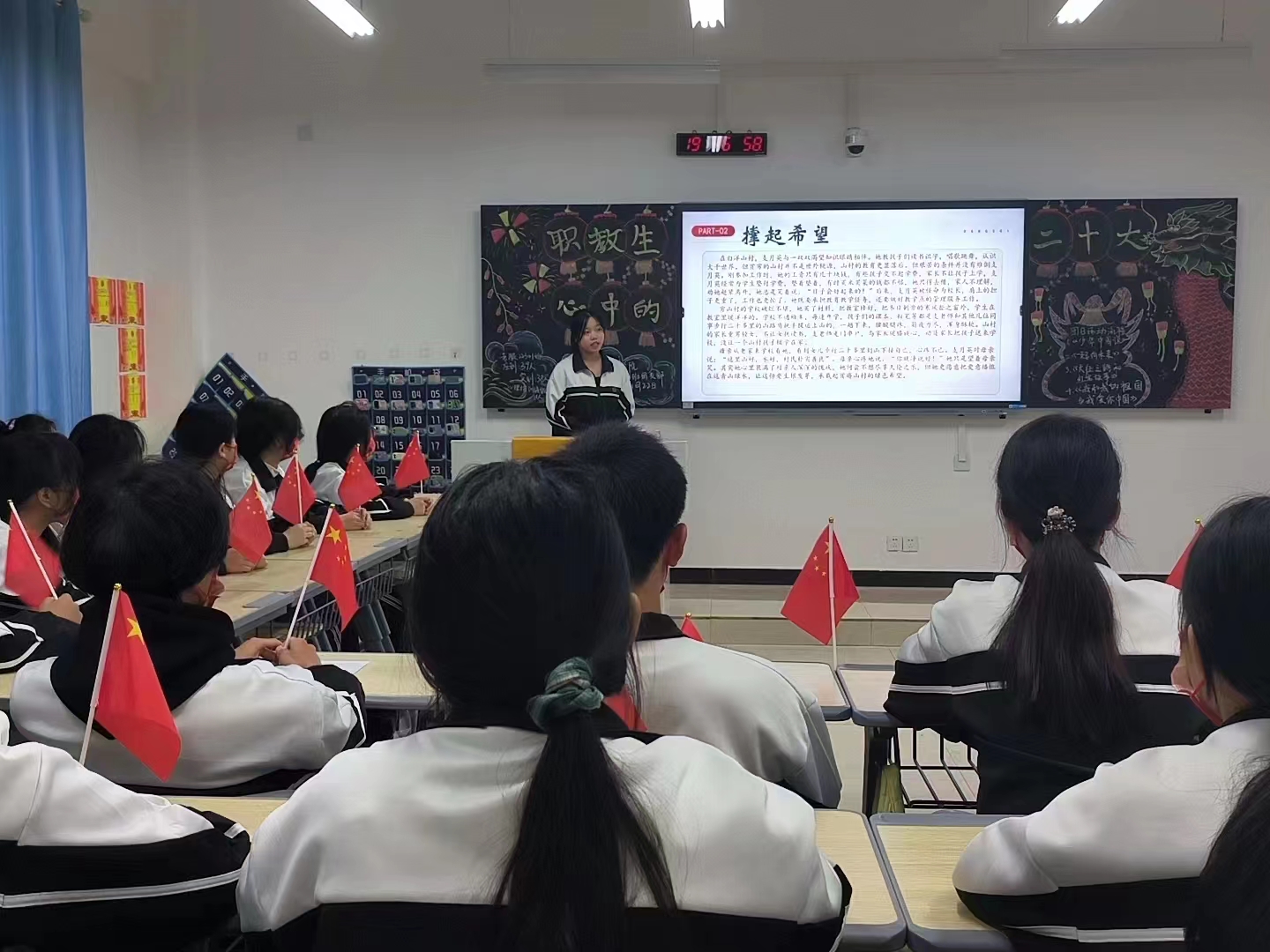 活动中,老师带领同学们集中观看了“岗位建功担使命,团结奋斗创伟业”的视频,引导青年们与历史使命、时代使命同频共振,引领青年勇于奋斗、敢于奋斗,增强信心、坚定决心,为党和国家的事业,为人民的事业,为民族的事业作出更大贡献。