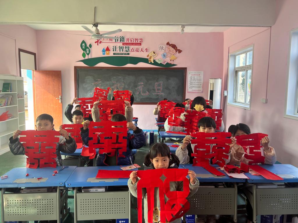 随行的青年志愿者为孩子们带来了其乐无穷的音乐小课堂和巧手剪窗花活动。志愿者们以新年为主题,结合自身专业知识,以游戏互动的方式教孩子们唱英文儿歌《Happy New Year》,并耐心地指导他们们剪纸窗花。现场一片欢声笑语,孩子们兴致勃勃、乐在其中,展现出一幅其乐融融的温馨画面。童伴妈妈也参与其中,鼓励孩子们不怕失败,勇于尝试。最后,每个孩子手上都有了属于自己的作品。