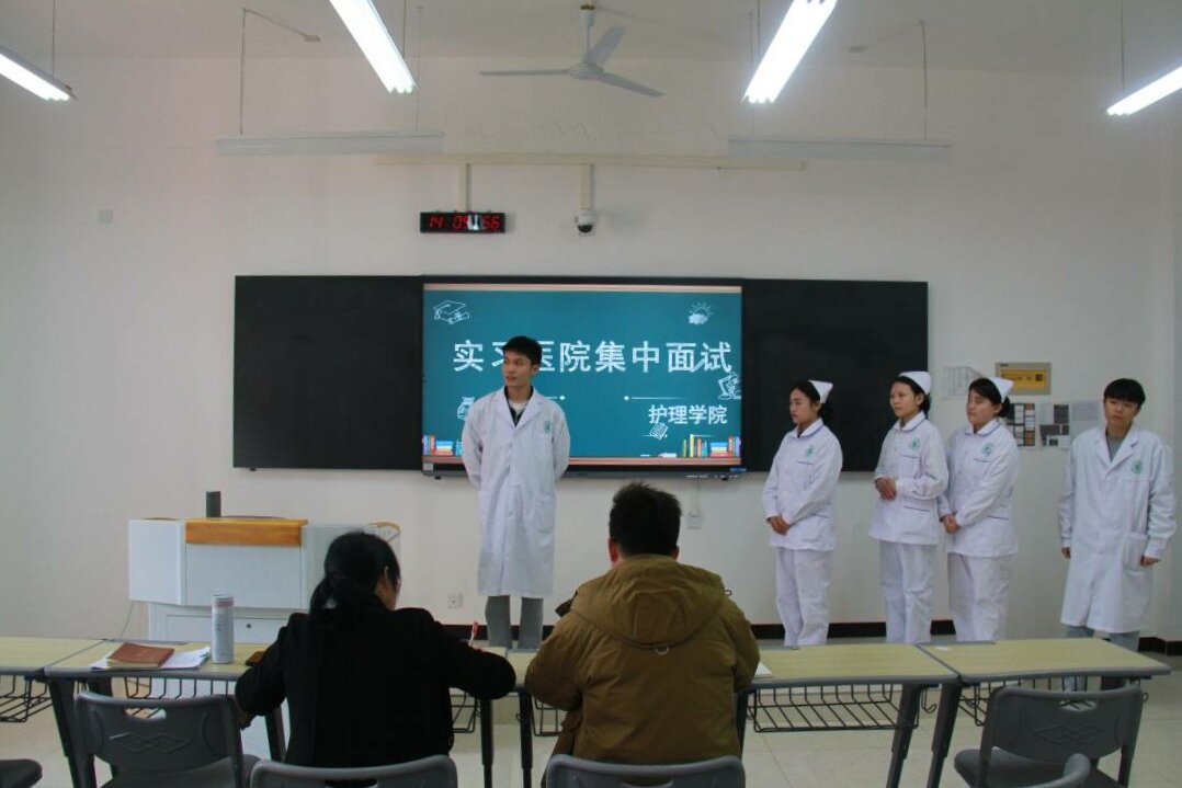 本站讯(护理学院 赖梦婷 黄伟)为切实做好护理学院学生的实习工作,更好地与用人单位搭建双向选择平台,2月下旬,护理学院在和济楼陆续开展实习生集中面试工作。院长吴少林,党总支书记胡蓉、副书记曲晴,实习就业科科长李辉员等8位老师担任面试评委。